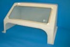 Komory tego typu wykonane są z formowanego termicznie PETG, posiadają również okienko wykonane z bezpiecznego szkła, co zapewnia znakomitą widoczność. Szeroka komora z małym otwarciem posiada mnóstwo miejsca na ręce, dlatego przeznaczona jest do działań takich jak oczyszczanie, ścieranie bądź szlifowanie. Komora jest również dostępna w wersji półprzezroczystej (kolor szkła opalowego).