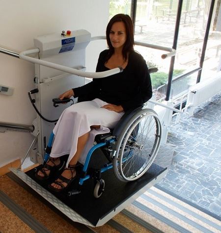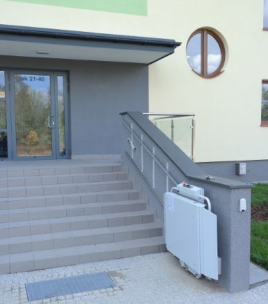 Platforma przyschodowa DELTA przemieszcza się po torze prostym wewnątrz budynków.Przeznaczona jest do transportu osób niepełnosprawnych które poruszają się na wózkach inwalidzkich oraz osób, które chodzą lecz mają problemy z przemieszczaniem się po schodach. W stanie złożonym platformę można przywołać do miejsca wsiadania za pomocą naściennych kaset przywoławczych, montowanych na przystankach. Zbudowana jest z części stałej - szyny (montowanej do słupków nośnych lub bezpośrednio do ściany) oraz ruchomej - platformy wyposażonej w silnik napędowy.
