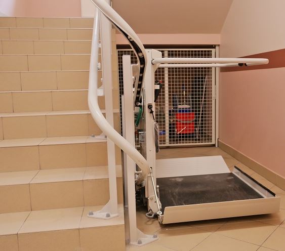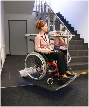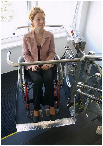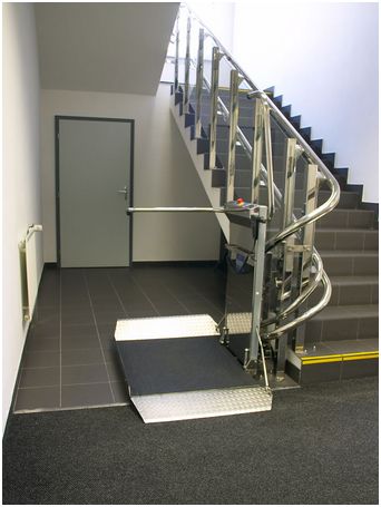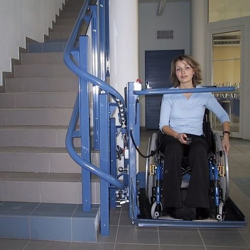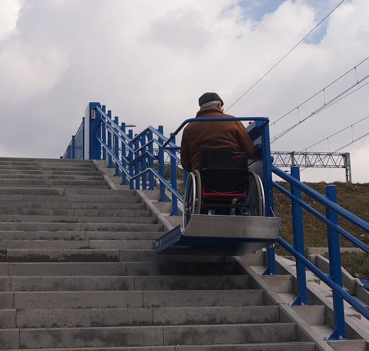 Platforma przyschodowa OMEGA przemieszcza się po torze krzywoliniowym. Przeznaczona jest do transportu osób niepełnosprawnych, które poruszają się na wózkach inwalidzkich lub dla osób, które chodzą natomiast mają problemy z przemieszczaniem się po schodach. W stanie złożonym platformę można przywołać do miejsca wsiadania za pomocą naściennych kaset przywoławczych, montowanych na przystankach. Po zajęciu miejsca na platformie ruch w górę lub w dół odbywa się po naciśnięciu pilota znajdującego się bezpośrednio na urządzeniu. Zbudowana jest z części stałej - szyny (montowanej do słupków nośnych lub bezpośrednio do ściany) oraz ruchomej - platformy.