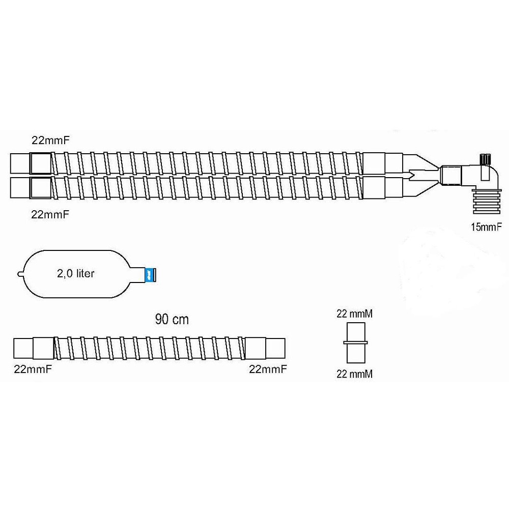 Obwód gładki wewnętrznie z gałęzią i workiem dla dorosłych oraz pediatryczny.