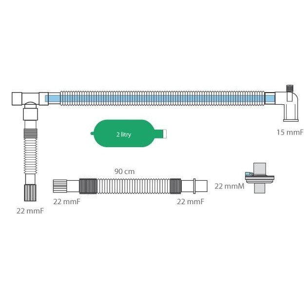 Obwód oddechowy z funkcją wymiany ciepła, filtrem i workiem dla dorosłych oraz pediatryczny. Obwód oddechowy do aparatów do znieczulania.