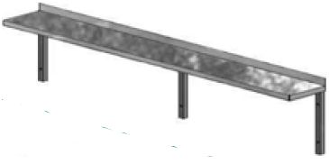 Półka ścienna. Tylna krawędź podniesiona na 30 mm, pozostałe boki proste. Odległość między półkami wynosi 300 mm.