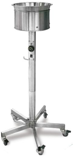Stojak z misą podgrzewaną na pięcioramiennej podstawie z 5 kółkami antystatycznymi o średnicy 50 mm (wszystkie koła z blokadą). Regulacja wysokości w zakresie 1000-1140 mm za pomocą hydraulicznej pompy nożnej. Przewód o długości 3 mb. Termoregulator nagrzewania płyty w zakresie 0-120 °C, regulacja temperatury za pomocą pokrętła. Maksymalna temperatura podgrzewanego płynu do 70°C.