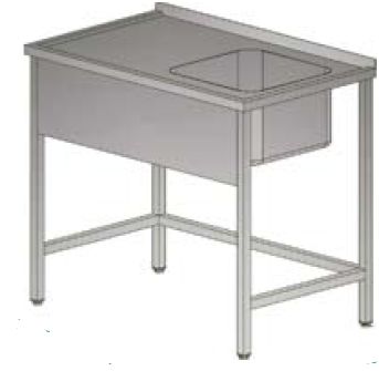 Stół roboczy ze zlewem. Tylna krawędź blatu podniesiona na wysokość 40 mm. W blacie komora o wymiarach: 400x400x250 mm. Z plastikowym syfonem. Na froncie pod blatem maskownica w wysokości 250 mm. Możliwość wypoziomowania stołu.