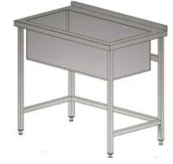 Stół roboczy z basenem o głębokości 300 mm z syfonem. Pod basenem maskownica z trzech stron o wysokości 300 mm. Możliwość wypoziomowania stołu. Stół bez baterii i bez otworu pod baterię sztorcową.