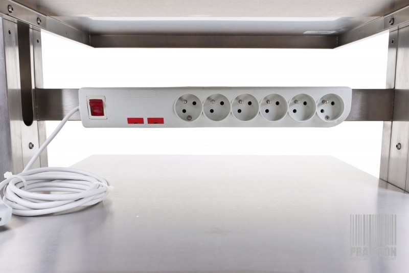- Wózek wyposażony w podstawę pod butlę, listwę zasilającą na 6 gniazdek oraz uchwyt kamery,