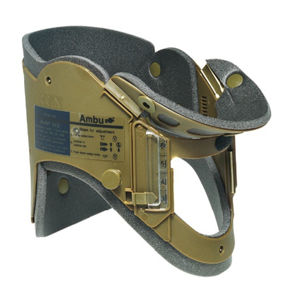 Wykonany z twardego i elastycznego polipropylenu, wyścielony miękką polietylenową pianką nie potrzebuje wstępnego formowania do żądanego kształtu i jest łatwy w użyciu. Ambu Perfit ACE Militarny dostarczany są w formie całkowicie płaskiej, ułatwiającej przechowywanie. Podbródek przed użyciem, w celu właściwego uformowania, należy przekręcić na zewnętrzną stronę. Podbródek można odchylać w celu uzyskania dostępu do ust pacjenta (np. w razie konieczności zaintubowania lub oczyszczenia jamy ustnej). Duży otwór na wysokości krtani ułatwia sprawdzenie tętna. Kołnierz wykonany jest z materiałów niewidocznych dla promieni X. Można go stosować w CT i MRI.