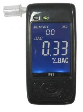 Alkomat FIT to elegancki, wyglądający jak telefon komórkowy tester z przyjaznym dla oka dużym wyświetlaczem podświetlonym na niebiesko. Wszystkie komunikaty wyświetlane na testerze są bardzo czytelne. Świetny prezent dla nowoczesnej kobiety. Alkomat FIT jest szczególnie polecany do użytku osobistego. Posiada duży elektroniczny zegar oraz pomiar temperatury podawany na wyświetlaczu. Dużą zaletą alkomatu jest akumulator litowo-polimerowy, który ładujemy podłączając alkomat przewodem do wejścia USB np. w notebooku. Dzięki takiemu rozwiązaniu oszczędzamy na wymianie baterii oraz w prosty i wygodny sposób jesteśmy w stanie naładować akumulator nawet w trakcie podróży. Alkomat sygnalizuje stan naładowania baterii w prawym górnym rogu wyświetlacza. Alkomat FIT posiada pamięć ostatnich 6 pomiarów więc w prosty sposób możemy sprawdzić czy stężenie alkoholu w naszym organizmie ma tendencję spadkową, czy wzrasta. Pomiar w alkomacie FIT przeprowadza się w bardzo prosty sposób za pomocą jednego przycisku. W przypadku przekroczenia wartości 0,20 promila alkomat dodatkowo ostrzega nas sygnałem dźwiękowym oraz migając na czerwono. W zakresie od 0,20 do 3,00 promila alkomat wskaże stężenie alkoholu w wydychanym powietrzu z dokładnością do setnych części promila.