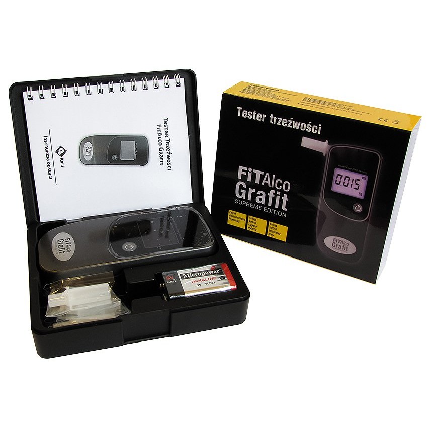 Alkomat FITalco Grafit jest wyposażony w niezwykle precyzyjny czujnik elektrochemiczny IV generacji. Zakres pomiaru Grafit do 4.00 promili. Alkomat jest gotowy do użycia po 35 sekundach od włączenia. Wynik wyświetlany jest na dużym dwukolorowym, podświetlanym wyświetlaczu. Oprócz wyniku urządzenie sygnalizuje dźwiękiem po przekroczeniu dopuszczalnej dawki alkoholu. Czas badania wynosi 5 sekund.