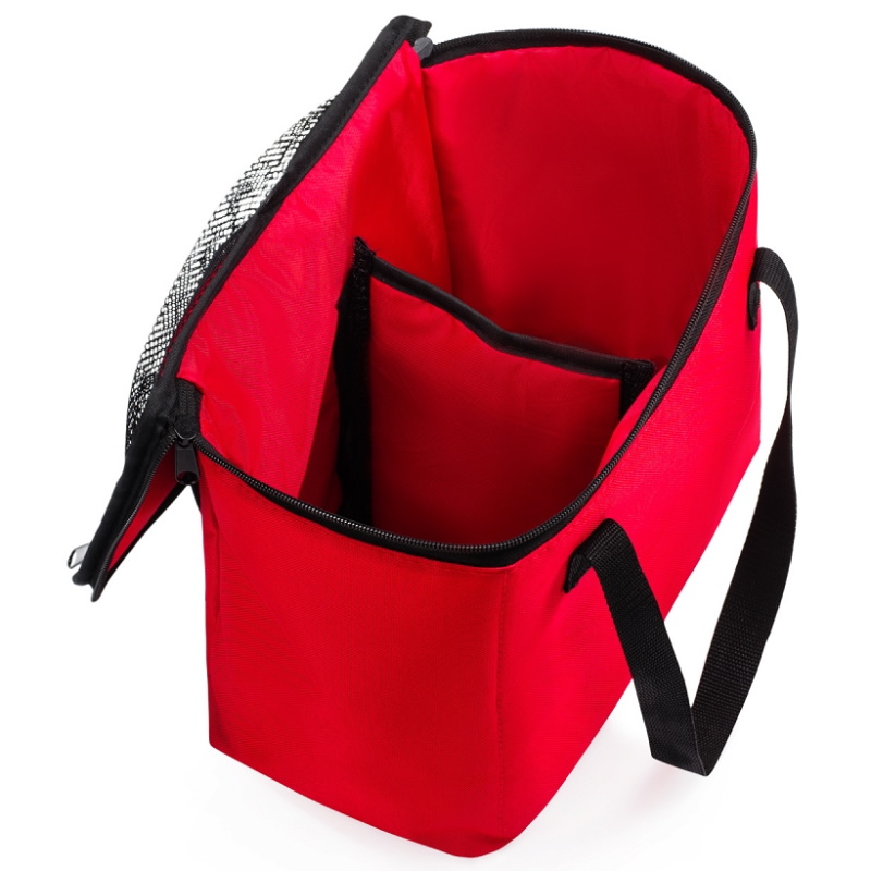 Torba na opatrunki , opiankowana z kieszenią z siatki zamykana na suwak, w środku zakładka segregacyjna.