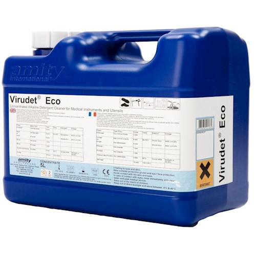 Alkaliczny środek czyszczący do narzędzi medycznych i wyrobów medycznych. Virudet Eco to alkaliczny środek czyszczący, który został zaprojektowany specjalnie do automatycznej ekontaminacji urządzeń medycznych, takich jak przyrządy anestezjologiczne, narzędzia chirurgiczne i mikrochirurgiczne, buty Chirurgiczne, sprzęt do oddychania,. Virudet Eco nie zawiera substancji niebezpiecznych, jest wysoce wydajnym, bezpiecznym środkiem w procesie zmywania wielu białkowych i organicznych zanieczyszczeń z powierzchni, także jeżeli chodzi o zaschniętą krew i tkankę. Można go bezpiecznie używać na każdego rodzaju powierzchniach (z wyjątkiem tych wykonanych z metali kolorowych) w myjniach-dezynfektorach. Virudet Eco jest wyrobem medycznym klasy I.