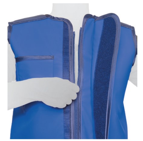 Dopasowanie kamizelki za pomocą nakładających się paneli przednich, zapinanych na rzepy z przodu.