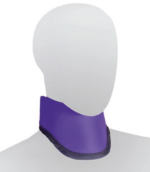 Anatomiczne wycięcie w kształcie litery U, z zapięciem typu rzep lub magnetycznym (opcja), wszyty pasek zakończony klipsem do przypinania do fartucha (opcja).