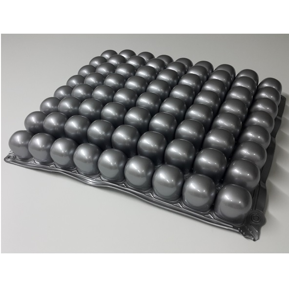 - Specjalnie zaprojektowana struktura wypełnionych powietrzem komór umożliwia przepływ powietrza między nimi, tym samym optymalizując rozłożenie nacisku ciała na poduszkę.