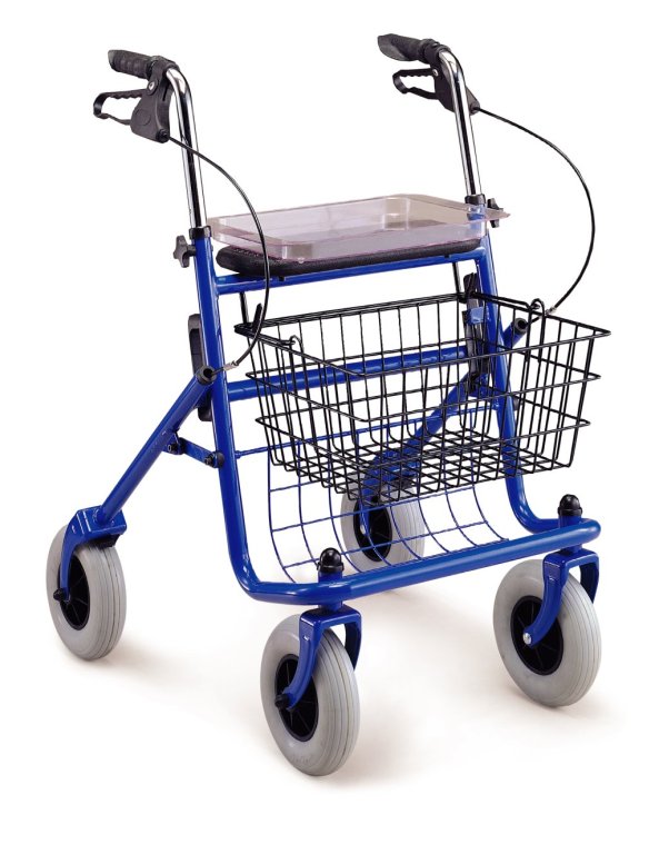 Chodzik pomocniczo-rehabilitacyjny dla osób niepełnosprawnych ze schorzeniem narządu ruchu, z problemami pionizacji. Składany, lekka konstrukcja. Wykonany ze stali stopowej. Maksymalne obciążenie: 120 kg. Waga: 11,5 kg. Regulacja wysokości od 780 do 940 mm. Wysokość siedziska: 610 mm. Szerokość: 590 mm. Sztywne, mocne siedzisko. Posiada ręczne hamulce i zdejmowany koszyk.