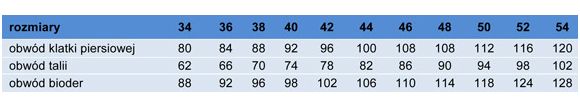Tabela wymiarów dostąpna w załączniku.