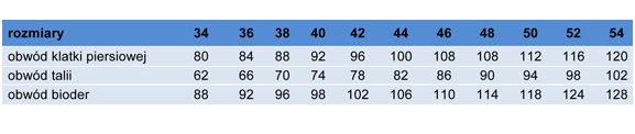 Tabela wymiarów dostępna w załączniku.