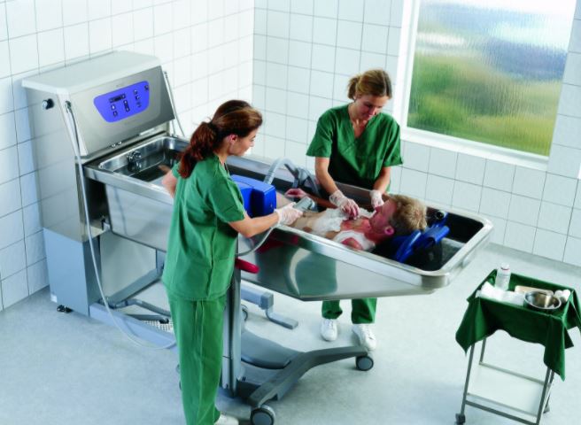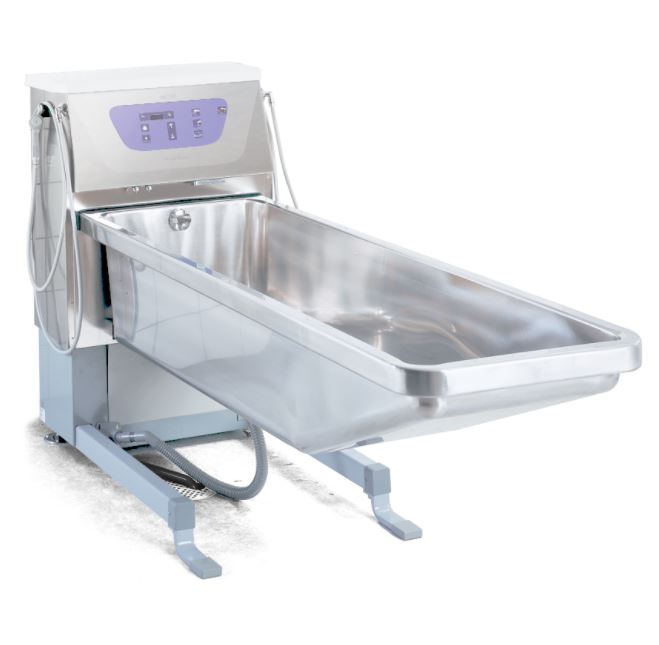 Primo Ferro to system kąpielowy o regulowanej wysokości, przeznaczony do pielęgnacji i leczenia poparzeń oraz chronicznych chorób skóry.