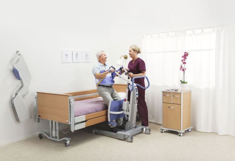 Sara Flex umożliwia jednemu opiekunowi asystowanie pacjentowi lub pensjonariuszowi w podniesieniu się z pozycji siedzącej do pozycji stojącej w jednym płynnym ruchu.