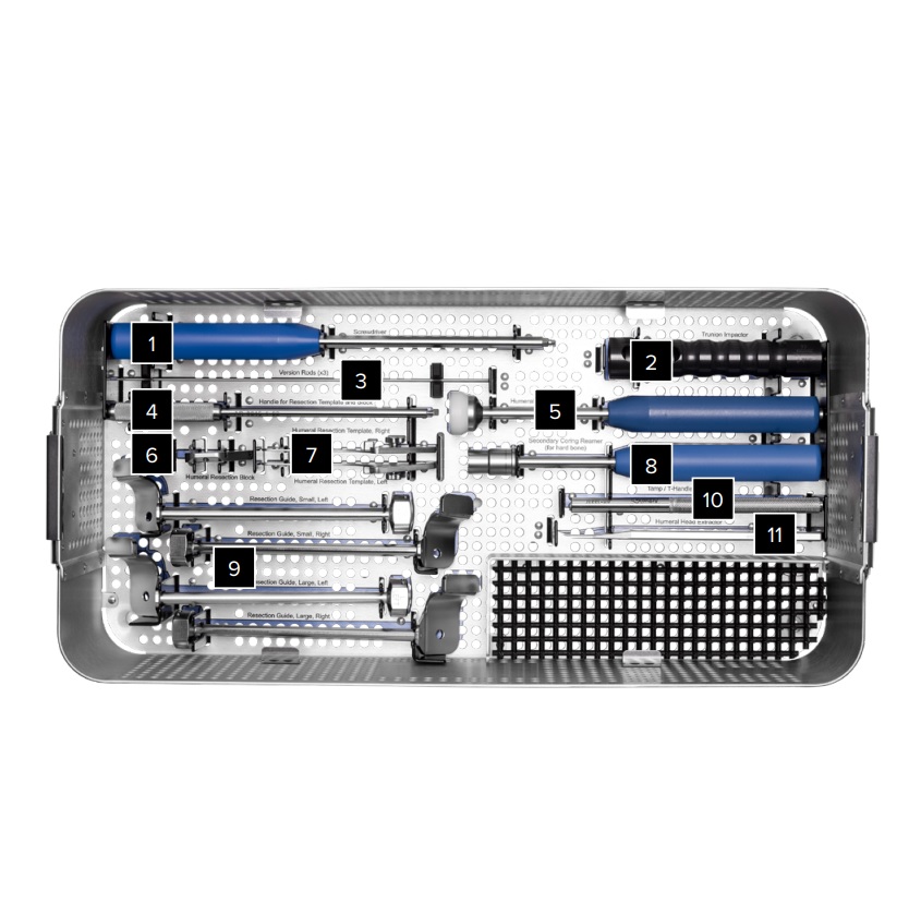 • Zachowana kość w trzonie kości ramiennej umożliwia rewizje do protezy anatomicznej lub odwróconej.