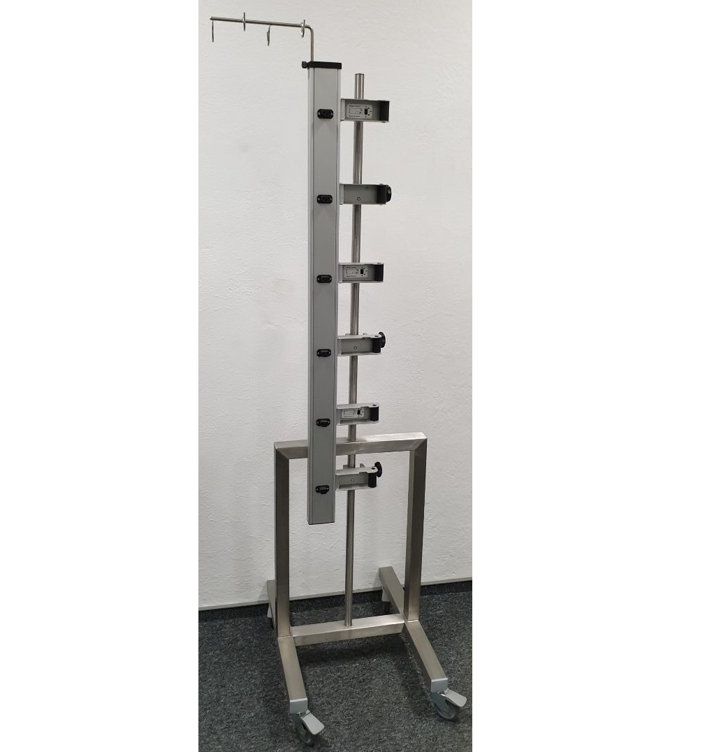 Wyposażenie dodatkowe: Mobilny statyw o podwyższonej nośności (do 35 kg), Wieszak na pojemniki z płynami infuzyjnymi