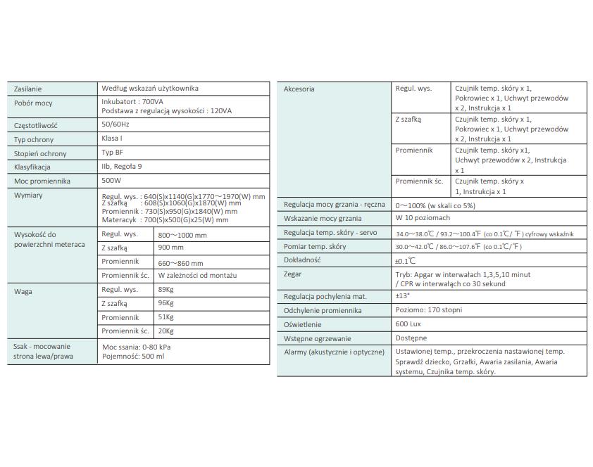 Specyfikacja (zdjęcie poglądowe w Galerii).