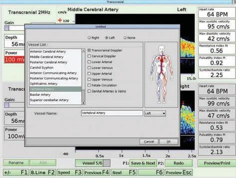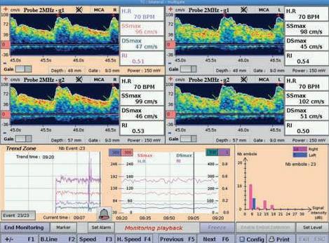 Obrazowanie M-mode ma wiele zalet łącznie ze skróceniem czasu potrzebnego na umiejscowienie okna przezczaszkowego. Ułatwia również identyfikację naczyń krwionośnych i skraca czas szkolenia. Doppler przezczaszkowy Atys to wyjątkowe urządzenie dostępne na rynku: można je zintegrować z nieinwazyjnym monitorowaniem rzutu serca.