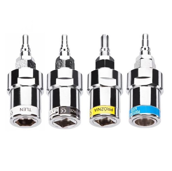 Adaptery punktów poboru służą do przełączania zasilania gazów medycznych pomiędzy różnymi systemami np. z DIN na AGA, G01 lub odwrotnie.