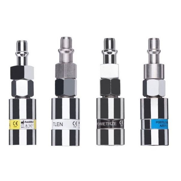 Wtyki do punktów poboru gazów medycznych w systemie AGA lub DIN są produkowane w czterech wersjach jako: