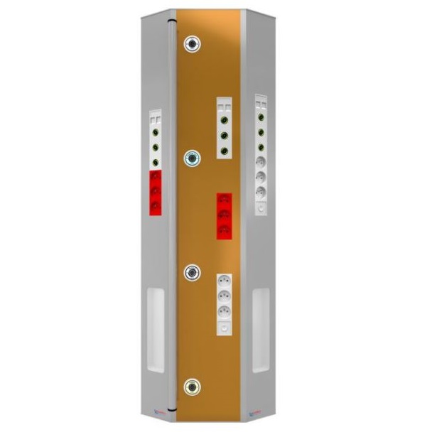 - dostęp do gniazd elektrycznych, serwis lub wymiana od czoła ściennej jednostki medycznej bez konieczności demontażu panelu ze ściany,