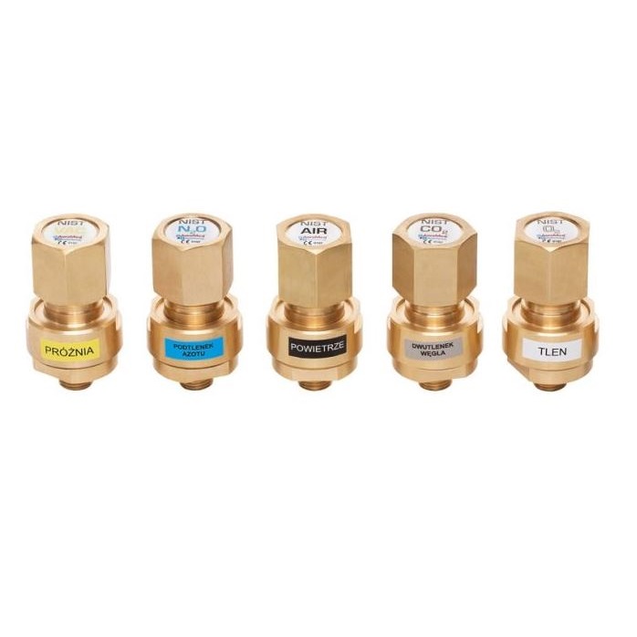 Wtyki typu NIST do awaryjnego podłączenia się do systemu gazów medycznych.