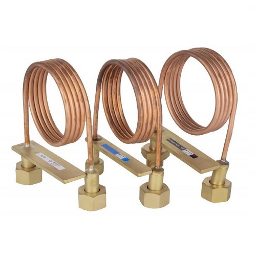 Łączniki wykonane są z rury miedzianej o grubych ściankach, wykończone różnymi gwintami w zależności od gazów, do których są podłączone.