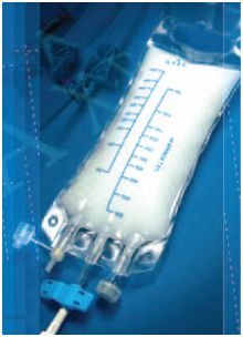 Worek do żywienia pozajelitowego • wykonany z tworzywa E.V.A. (ethylene vinyl acetate) – kopolimer etylenu i octanu winylu • nie zawiera lateksu ani winylu • zacisk jednorazowego otwarcia • łącznik Luer-Lock • dostępny także z lekką torbą ochronną dla roztworów światłoczułych • sterylny • jednorazowego użytku • opakowanie typu peel-pack • okres przydatności 5 lat. Pojemnośc: 250, 500, 1000, 2000, 3000, 4000 ml