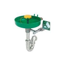 Mocowana do ściany z rurką odpływową. Jednocześnie skutecznie opłukuje oczy i twarz. Posiada misę z tworzywa ABS o średnicy 28 cm oraz opatentowaną wylewkę Axion MSR z powłoką odkażającą, zapobiegającą rozwojowi grzyba i pleśni na jej powierzchni. Wylewka Axion MSR cechuje się odwróconym wypływem laminarnym, ułatwiającym wypłukiwanie zanieczyszczeń w kierunku zewnętrznego kącika oka, co jest zgodne z zaleceniami medycznymi. Myjka uruchamiana jest przy pomocy dźwigni ręcznej. Wszystkie elementy wykonane z tworzywa ABS posiadają stabilizatory UV, dzięki czemu nie zmieniają koloru i nie kruszeją w kontakcie z substancjami alkalicznymi, roztworami soli, olejami, większością kwasów oraz światłem słonecznym. Urządzenie posiada wbudowany regulator przepływu oraz chromowany, mosiężny zawór kulowy o stabilnym położeniu otwartym, wyposażony w trzpień i kulę ze stali nierdzewnej, co zapewnia podwyższoną ochronę przed korozją i uszkodzeniem. Dodatkowo zawiera chromowany filtr siatkowy. Wyposażenie opcjonalne: pedał nożny uruchamiający myjkę do oczu i twarzy, syfon, mieszacz termostatyczny. Uniwersalne oznakowanie w komplecie: znak BHP. Wydajność 14 l/min. Zasilanie 1/2". Odpływ 1". Waga 3 kg. Atest/opinia CIOP, PZH oraz ANSI, DIN i OSHA, znak CE, Norma EN 15154-2