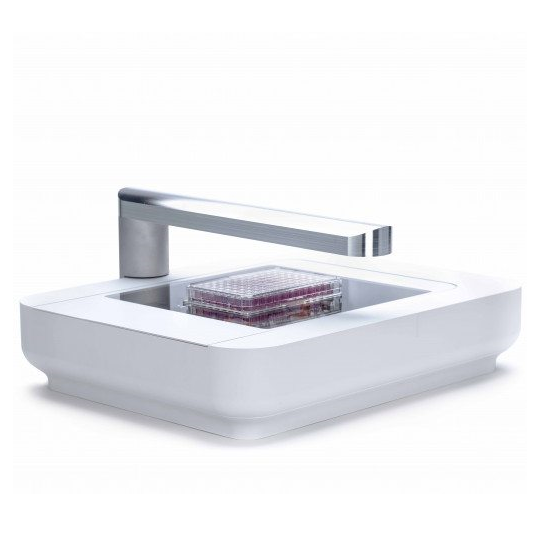 Zautomatyzowany mikroskop do obserwacji techniką jasnego pola, który wizualizuje całe naczynia hodowlane i działa z wnętrza standardowych inkubatorów CO2.