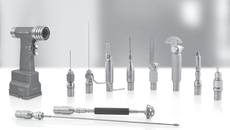 Predefiniowane zestawy ortopedyczne, sercowo-naczyniowe, +-/wierteł i wiertarki z piłą sagitalną. Rękojeść i akcesoria podlegają sterylizacji w autoklawie. Bateria połączona z silnikiem wyjmowana na czas sterylizacji, umieszczana z powrotem w rękojeści z zastosowaniem sterylnego tunelu. Takie rozwiązanie zwiększa żywotność zestawu. Karinca posiada nowoczesne akumulatory litowo-jonowe.