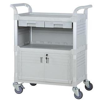 Rama wózka FC2813 wykonana jest z aluminium, a blat i uchwyty boczne z wytrzymałego plastiku PP (POLIPROPYLEN). Panele boczne wykonane są z tworzywa ABS. Wózek medyczny posiada 4 niebrudzące kółka tworzywa, w tym dwa z blokadą. Zamykane wózki na leki istnieją w trzech opcjach różniących się ilością zamykanych komór. Seria tych wózków medycznych jest idealna do transportu i sortowania leków w szpitalach, klinikach, domach opieki, ośrodkach zdrowia i innych placówkach medycznych.