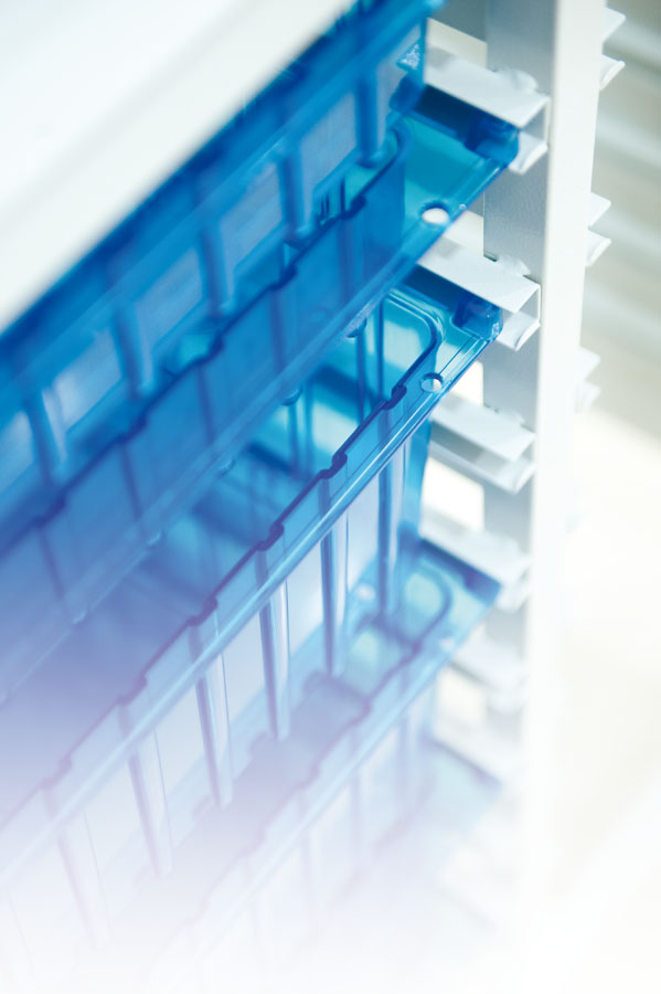 Otwarty wózek do przewozu leków. Szuflady umieszczone w dwóch kolumnach. Wózek posiada niebieskie tace a tworzywa ABS, o różnych wysokościach, z możliwością otwierania z dwóch stron. Wózek posiada odbojniki przy kółkach. Specialnie zaprojektowane odbojniki chronią użytkownika i wózek.