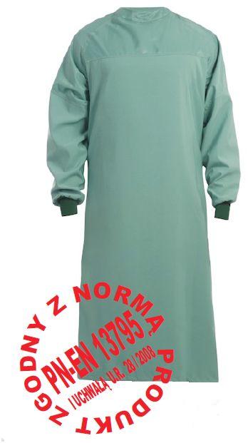 Fartuch operacyjny standardowego ryzyka WB 5.2/5/A składa się z dwóch części - pola krytycznego (gramatura 135g/m2, skład: 98% poliester+ 2% włókno węglowe), oraz pola mniej krytycznego (gramatura 125g/m2, skład: 44% poliester + 54,6% bawełna + 1,4% włókno węglowe). Przód i rękawy fartucha wykończone hydrofobowo. Temperatura prania 70 st.C, temperatura sterylizacji 134 st.C. Dostępny w rozmiarach M, L, XL, XXL. Występuje w kolorach: zielony oraz niebieski.