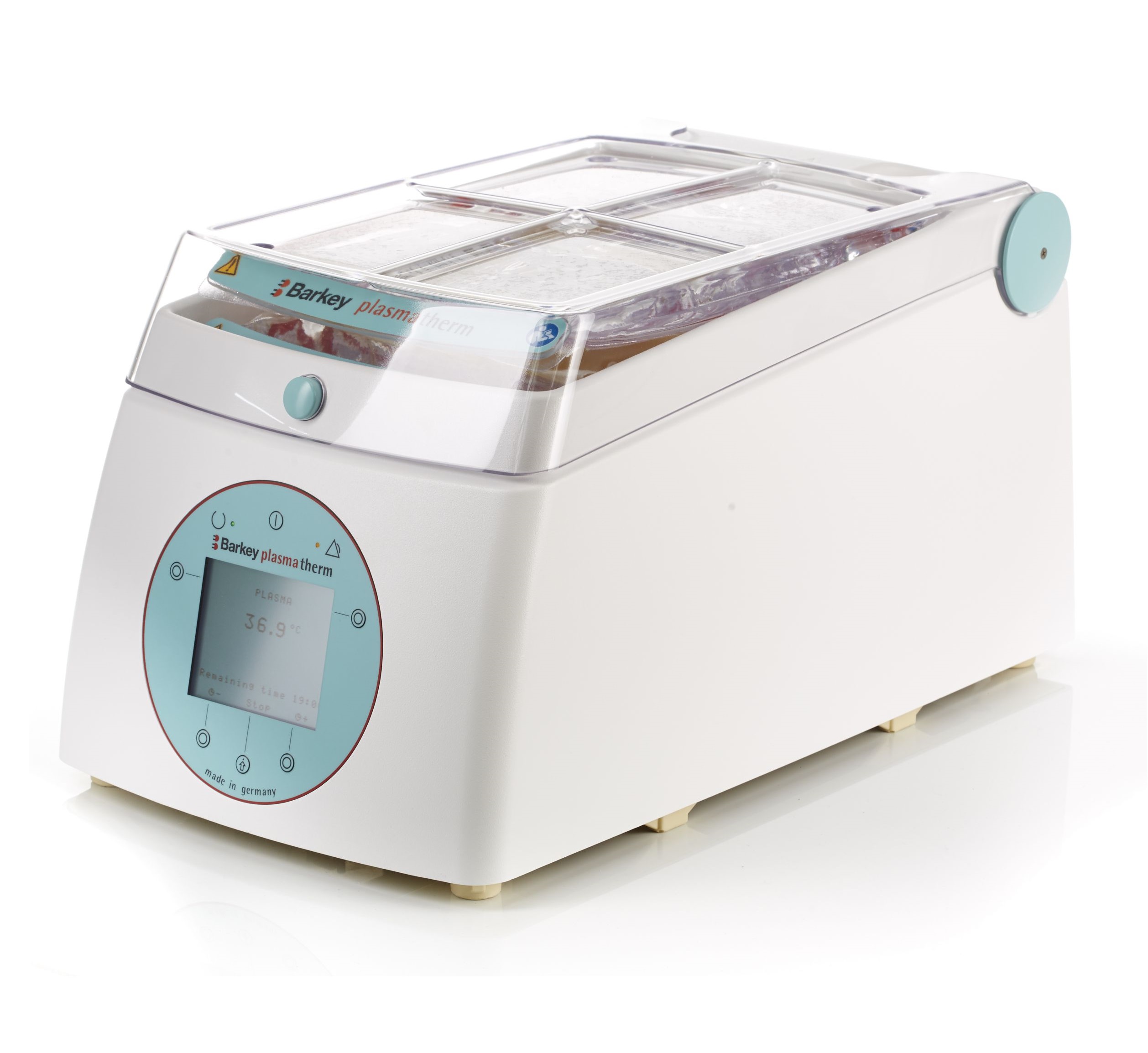 Barkey Plasmatherm jest urzadzeniem do rozmrazania i podgrzewania wszystkich preparatów osocza swiezo mrozonego (FFP), krwi i koncentratów erytrocytarnych (KKcz), preparatów komórek macierzystych (HPC) oraz płynów infuzyjnych.