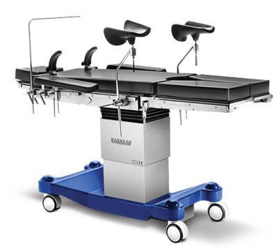 Przenikalna dla promieni wierzchnia część stołu i szeroki zakres jej przemieszczania wzdłużnego umożliwiają pełne zastosowanie łuku chirurgicznego (łuk w C) lub promieni rentgenowskich. Ciężki produkt zapewnia zasadę bezwładności, a przez to większą stabilność i precyzję ruchu. Akcesoria, które są dostarczane ze stołem operacyjnym BF 683EH: 1. Zestaw mat lepkosprężystych. 2. Rama ekranu anestezyjnego 3. Para podpórek ramion 4. Para podpórek rąk 5. Para klamer udowych.