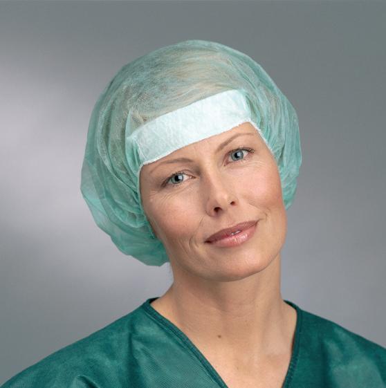 Włókninowy czepek chirurgiczny w kształcie beretu, ze wstawką pochłaniającą pot (wstawka wykonana jest z białej trójwarstwowej chłonnej włókniny) ściągnięty delikatną, nie uciskającą, bezlateksową gumką. Pakowany w kartonik w formie podajnika. Kolor zielony. Ilość sztuk w opakowaniu "podajnik"/Ilość sztuk w opakowaniu transportowym: 120/480.