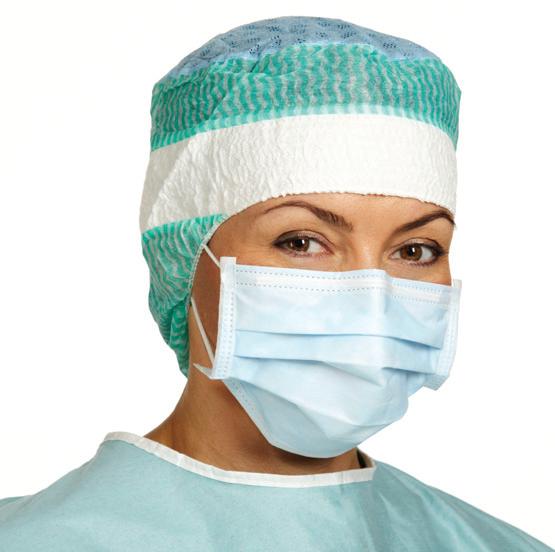 Mocowana na gumki czterowarstwowa odporna na przesiąkanie hypoalergiczna. Wodoodporna - technologia Splash Resistant. Pakowana w kartonik w formie podajnika. Ilość sztuk w opakowaniu "podajnik"/Ilośc sztuk w opakowaniu transportowym: 50/600. Kolor zielony. NORMA: PN EN 14683 IIR.