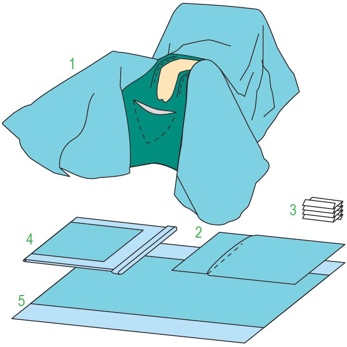 URO AND GYNAECOLOGY SET. Elementy zestawu: serweta chirurgiczna do zabiegów ginekologicznych o wymiarach 200/355x295 cm, zintegrowana z ekranem anestezjologicznym i nogawicami, posiada samoprzylepny otwór w okolicach krocza o wymiarach 17/8x28 cm otoczony warstwą chłonną i dwa mankiety do mocowania. Serweta wyposażona jest w zintegrowany worek do przechwytywania płynów z możliwością podłączenia drenu - 200/355x295 cm - 1 sztuka; serweta chirurgiczna pod pośladki 75x100 cm - 1 sztuka; ręczniki chłonne 18x25 cm - 4 sztuki; osłona na stolik MAYO 79x145 cm - 1 sztuka; serweta chirurgiczna - (owinięcie zestawu) 150x190 cm - 1 sztuka. Zestaw sterylny. Ilość sztuk w opakowaniu "podajnik"/Ilość sztuk w opakowaniu transportowym: 5/10.