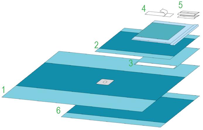Elementy zestawu: serweta chirurgiczna do zabiegów na kończynach, posiadjąca samouszczelniający otów (O 7 cm) 200x300 cm - 1 sztuka; serweta chirurgiczna 140x190 cm - 1 sztuka; serweta chirurgiczna z taśmą samoprzylepną (folia PE) 75x75 cm - 1 sztuka; taśma samoprzylepna 9x49 cm - 1 sztuka; ręczniki chłonne 18x25 cm - 4 sztuki; osłona na stolik MAYO 79x145 cm - 1 sztuka; serweta na stolik - 140x190 cm (owinięcie zestawu) - 1 sztuka. Zestaw sterylny. Ilość sztuk w opakowaniu "podajnik": 18.