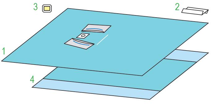 Zestaw okulistyczny. Elementy zestawu: serweta chirurgiczna do zabiegów okulistycznych o wymiarach 150x180 cm, posiadająca otwór wypełniony folią chirurgiczną o wymiarach 5x7 cm, oraz dwie zintegrowane kieszenie po obu stronach otworu 150x180 cm - 1 sztuka; ręcznik chłonny 18x25 cm - 1 sztuka; folia chirurgiczna 10x12 cm - 1 sztuka; serweta na stolik (owinięcie zestawu) 150x150 cm - 1 sztuka. Ilość sztuk w opakowaniu "podajnik"/Ilość sztuk w opakowaniu transportowym: 16/32.