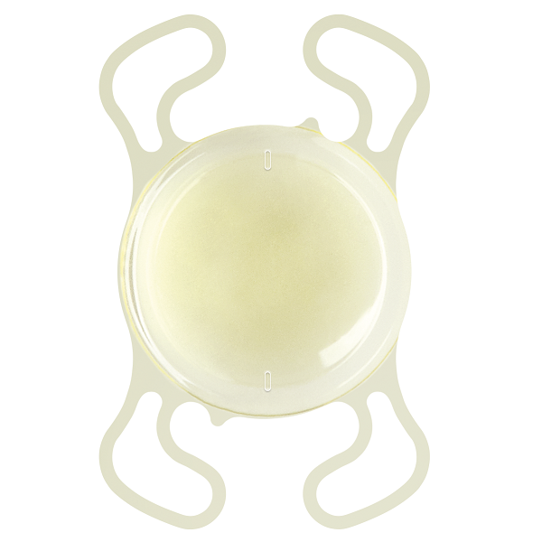 LUXSMART YELLOW PRELOADED – Soczewka wewnątrzgałkowa z wydłużoną ogniskową / Wstępnie załadowana / Cięcie ≥ 2.2 mm / Materiał: akryl hydrofobowy / Żółta / Filtr UV i filtr światła fioletowego / Konstrukcja soczewki: jednoczęściowa, cztery oddzielne hapteny narożne, otwór w każdym haptenie, angulacja haptenów: 0°, znaczniki orientacji na krawędziach części optycznej (prawa góra, lewy dół), ostra tylna krawędź 360° (stanowi barierę zabezpieczającą przed PCO) / Konstrukcja optyczna: asferyczna z wydłużoną głębią ostrości (centralny obszar o średnicy 2 mm o wydłużonej ogniskowej z kombinacją aberracji sferycznych), pośrednia strefa przejściowa w celu uzyskania łagodnego obniżenia zbieżności od centrum do części peryferyjnej i braku utraty światła, jednoogniskowa i asferyczna część peryferyjna) / Średnica całkowita soczewki: 11.00 mm / Średnica części optycznej: 6.0 mm / Zakres dioptrażu: od 0.00D do +10.00D co 1.00D, od +10.00D do +34.00D co 0.50D