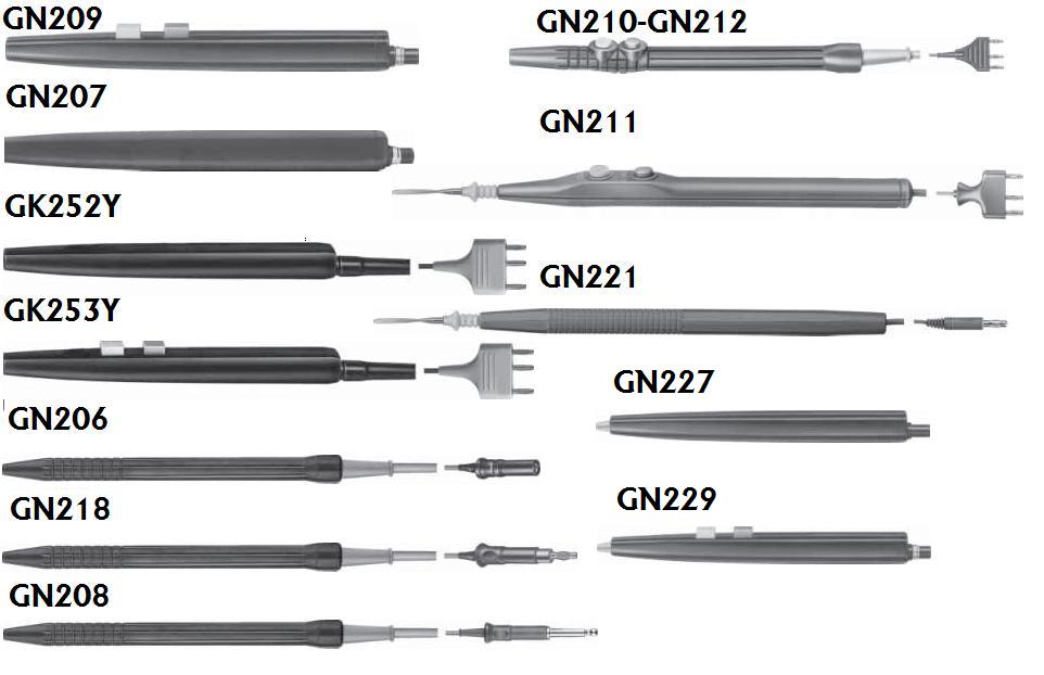 Uchwyt do elektrod z dwoma przyciskami, z wtyczką zaprojektowaną według standardów dla Stanów Zjednoczonych, średnica 2,4 mm oraz 4 mm. Kompatybilny z urządzeniami: Aesculap, ACMI, Berchtold, Conmed, Martin, Valleylab.