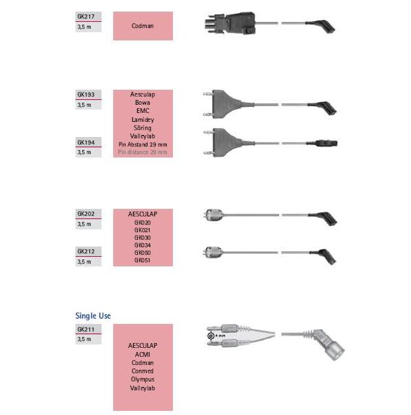 Kabel do uchwytów elektrochirurgicznych bipolarnych o długości 3,5 m lub 5 m. Produkt kompatybilny z urządzeniami: Aesculap, ACMI, Berchtold, Martin, Wolf.