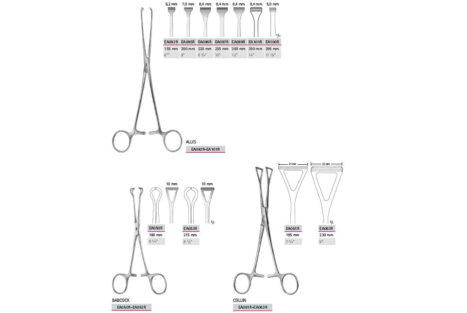 - EA031R-EA033R BABCOCK- Długość 170 mm (EA031R), 215 mm (EA032R), 200 mm (EA033R).